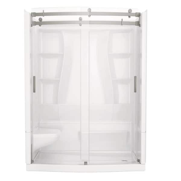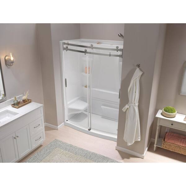 Classic 500 Curve Left Seat 60 in. x 32 in. x 75.88 in. H Alcove Shower Stall/Kit in Stainless