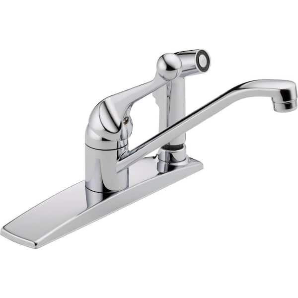 Classic Single-Handle Standard Kitchen Faucet with Side Sprayer and Fittings in Chrome