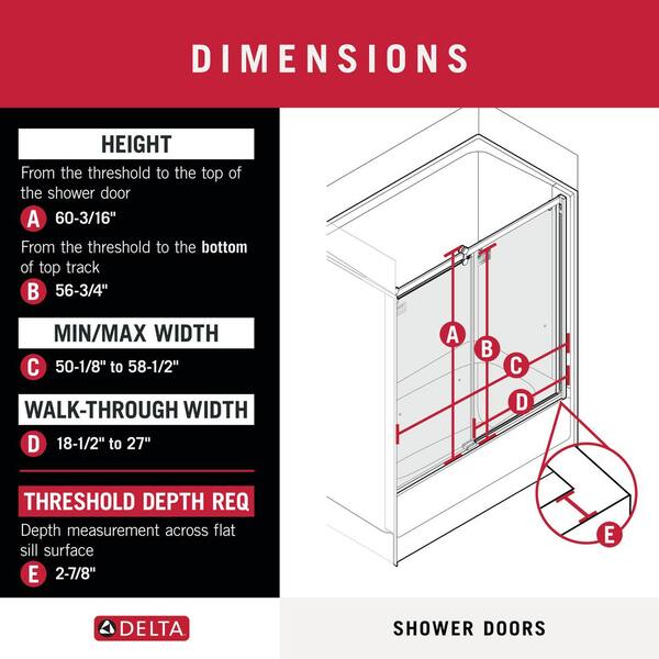 Crestfield Contemporary 50-1/8 to 58-1/2 in. W in. x 58-3/4 in. H Frameless Sliding Bathtub Door, Chrome, Clear Glass
