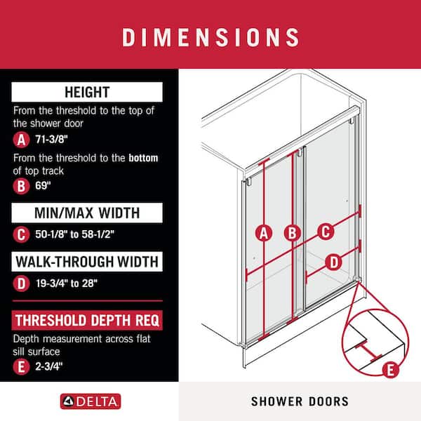 • Double sliding bypass doors; fits width 50-1/8 to 58-1/2 in.