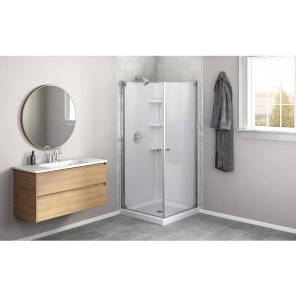 Foundations 32 in. L x 32 in. W x 74 in. H Center Corner Shower Stall/Kit in High Gloss White
