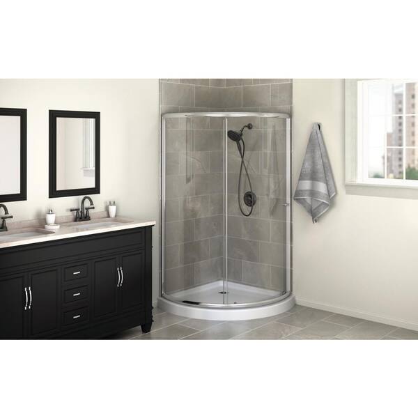 Foundations 38 in. L x 38 in. H W x 70 in. H Corner Shower Kit with Sliding Frameless Shower Door and Shower Pan