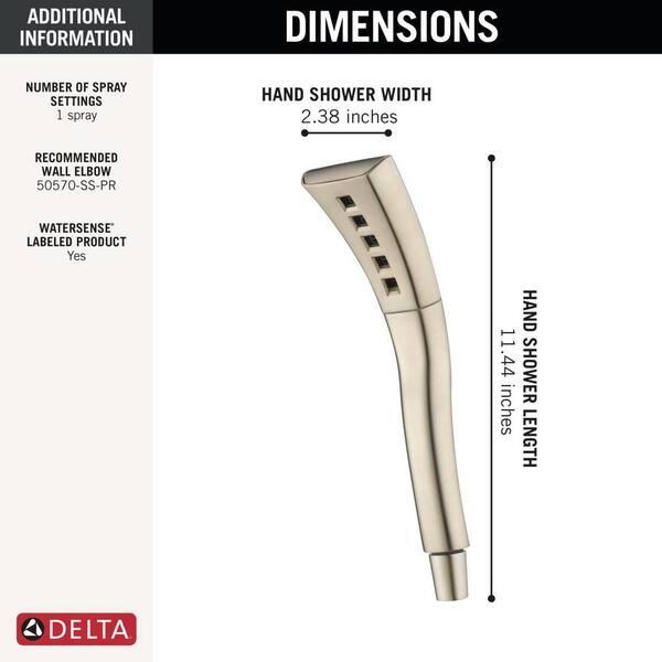 • Stainless handheld shower head features 1 spray setting