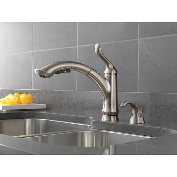 Linden Single-Handle Pull-Out Sprayer Kitchen Faucet with Soap/Lotion Dispenser in Stainless Steel