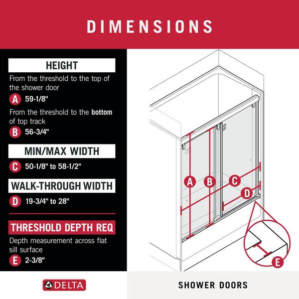 • Double sliding bypass doors; fits width 50-1/8 to 58-1/2 in.