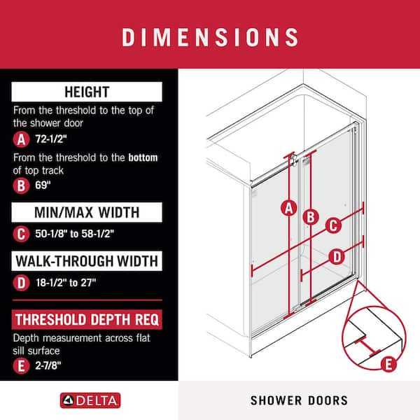• Double sliding bypass doors; fits width 50-1/8 to 58-1/2 in.