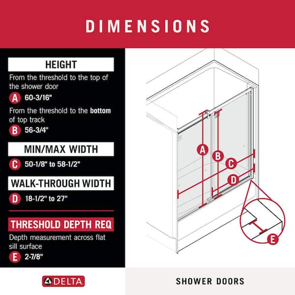 • Double sliding bypass doors; fits width 50-1/8 to 58-1/2 in.