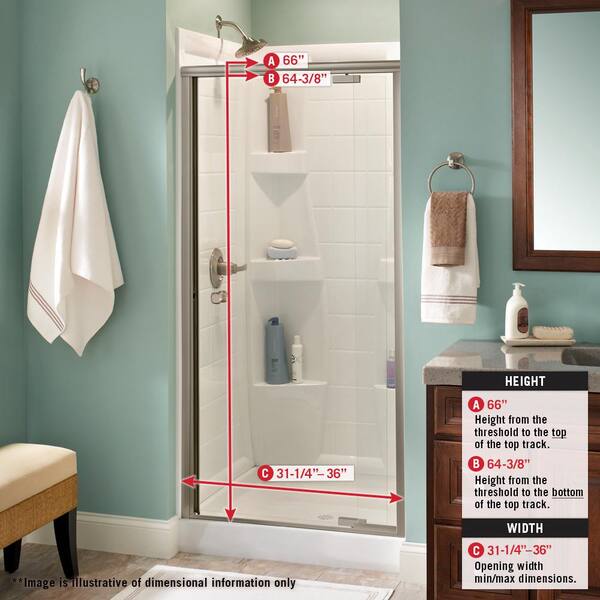 Mandara 33 in. x 64-3/4 in. Semi-Frameless Contemporary Pivot Shower Door in Chrome with Rain Glass