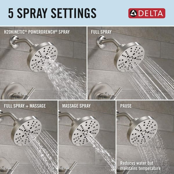 Nicoli 5-Spray Tub and Shower Faucet with J-Spout 8 in. Widespread Double Handle Bathroom Faucet in Stainless