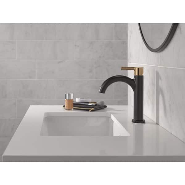 Nicoli J-Spout Single Hole Single-Handle Bathroom Faucet in Matte Black/Champagne Bronze