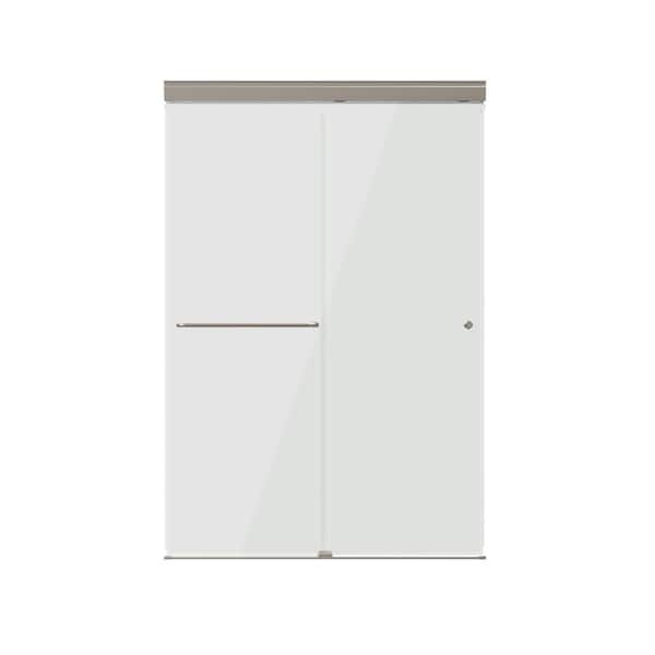 Portwood 44 to 48 in. W x 70-1/4 in. H Semi-Frameless Sliding Shower Door in Nickel with 1/4 in. Clear Glass