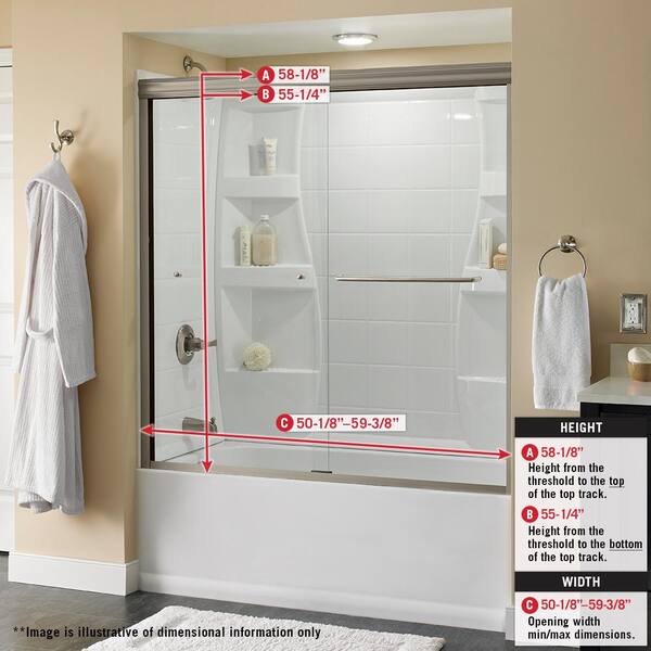 Simplicity 60 in. x 58 1/8 in. Semi-Frameless Traditional Sliding Bathtub Door in White and Chrome with Clear Glass