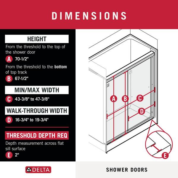 • Double sliding bypass doors; fits width 43-3/8 to 47-3/8 in.
