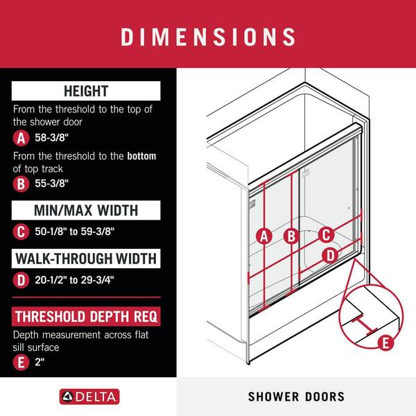 • Double sliding bypass doors; fits width 50-1/8 to 59-3/8 in.