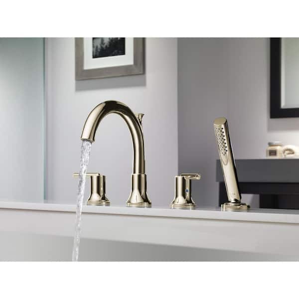 Trinsic 2-Handle Deck Mount Roman Tub Faucet Trim Kit Only in Polished Nickel with Hand Shower (Valve Not Included)
