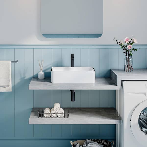 Denbigh 19 in. x 14 in. Vitreous China Rectangular Bathroom Sink in White with Black Trim