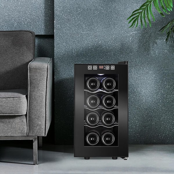 10.2 in. Black Freestanding Beverage Center 8-Bottle Wine Cooler with Adjustable Stainless Steel Wire Shelves