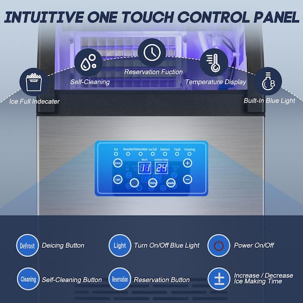 16.15 in. 150 lbs./day Half Size Cube Commercial Freestanding Ice Maker in Stainless Steel with LED Intelligent Control