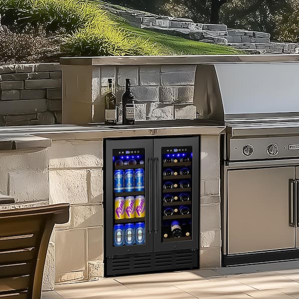 23.5 in. Dual Open Built-in/Freestanding Outdoor Beverage Center in Black with Adjustable Temperature and Lighting