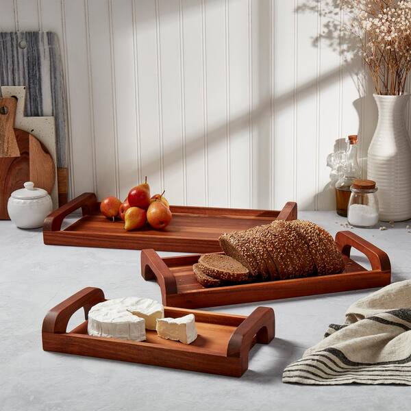 19 in. Assorted Rectangular Brown Acacia Wood Cutting Boards with Handles