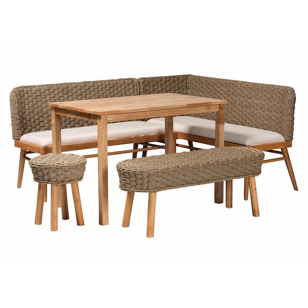 Denver 5-Piece Natural Seagrass and Oak Brown Wood Top Dining Set