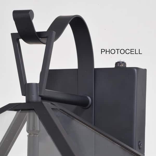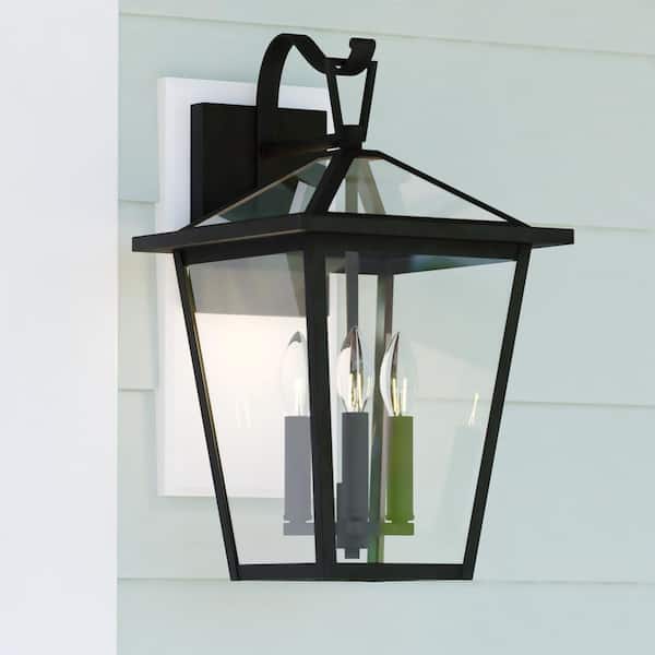 Derby 10 in. W 3-Light Dusk to Dawn Matte Black Outdoor Hardwired Wall Lantern Clear Glass Shade, LED Compatible