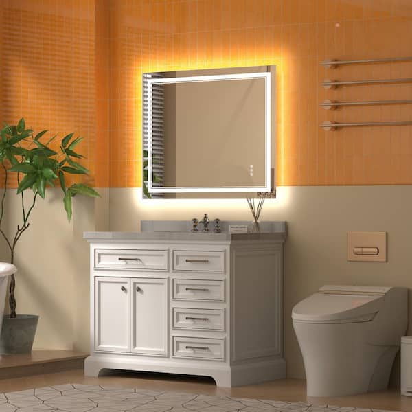 Derrin 40 in. W x 32 in. H Medium Rectangular Frameless Dimmable Anti-Fog LED Wall Bathroom Vanity Mirror in Silver