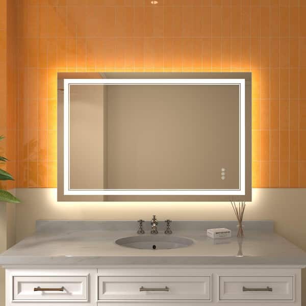 Derrin 48 in. W x 32 in. H Large Rectangular Frameless Anti-Fog Dimmable LED Wall Bathroom Vanity Mirror in Silver