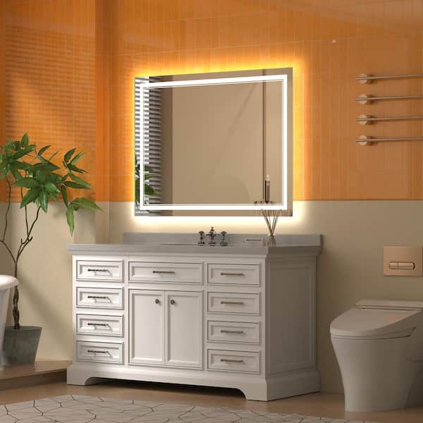 Derrin 48 in. W x 36 in. H Large Rectangular Frameless Anti-Fog Dimmable LED Wall Bathroom Vanity Mirror in Silver
