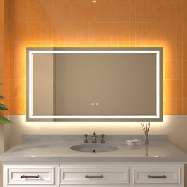 Derrin 55 in. W x 30 in. H Large Rectangular Frameless Anti-Fog Dimmable LED Wall Bathroom Vanity Mirror in Silver