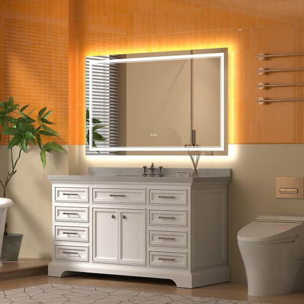 Derrin 60 in. W x 36 in. H Large Rectangular Frameless Anti-Fog Dimmable LED Wall Bathroom Vanity Mirror in Silver