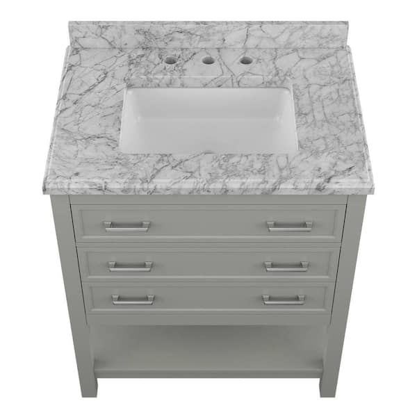 Affinity 31 in. Modern Bathroom Vanity in Gray with Carrara White Marble Top