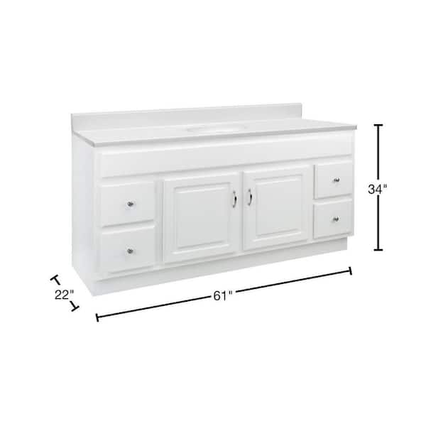 60 in. x 21 in. x 30 in. 2-Door 4-Drawer Vanity in White with Solid White Single Hole CM Vanity Top with Basin