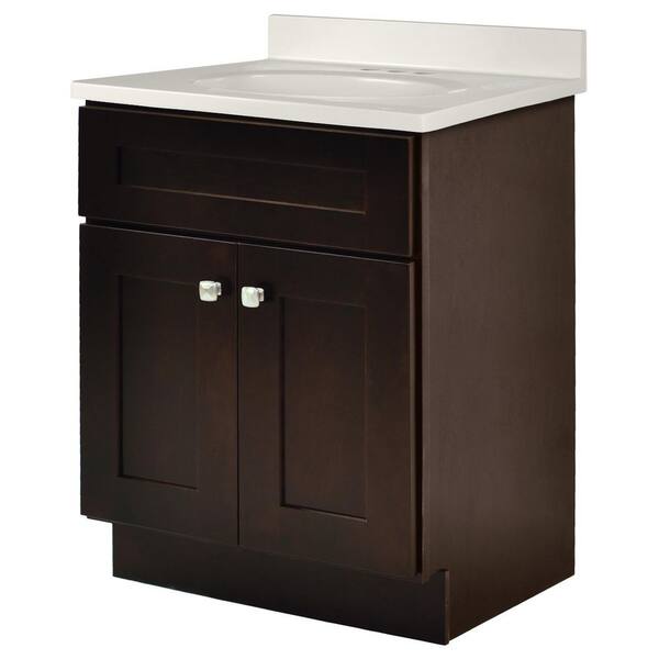 Brookings 25 in. W x 19 in. D Bathroom Vanity in Espresso Brown with Cultured Marble Ivory Swirl Vanity Top, Assembled