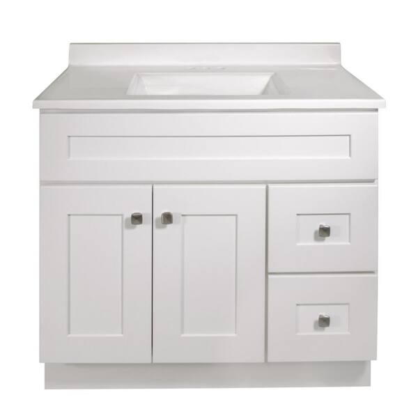 Brookings 37 in. 2-Door 2-Drawer Bathroom Vanity in White with Cultured Marble Solid White Top (Ready to Assemble)