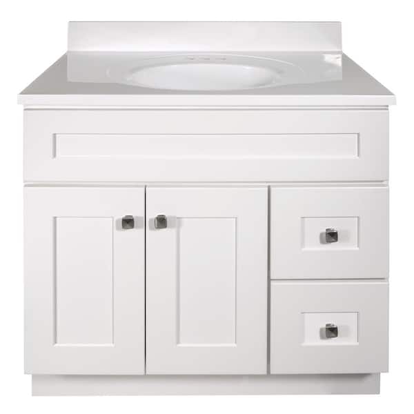 Brookings 37 in. Single Sink Freestanding White Bath Vanity with Solid White Cultured Marble Top Assembled