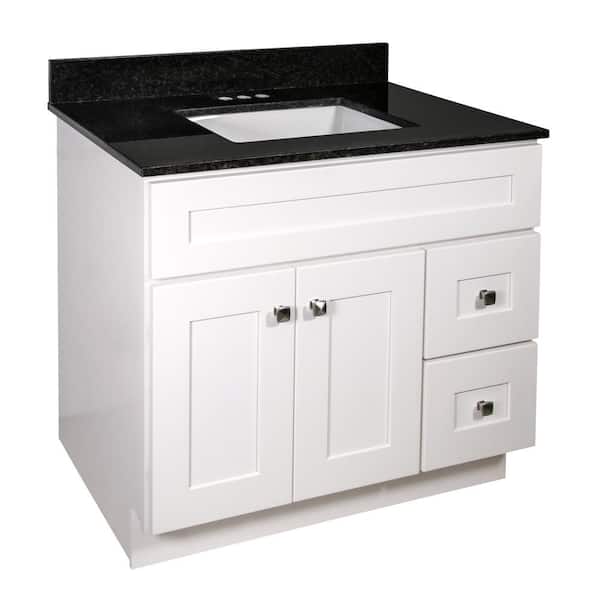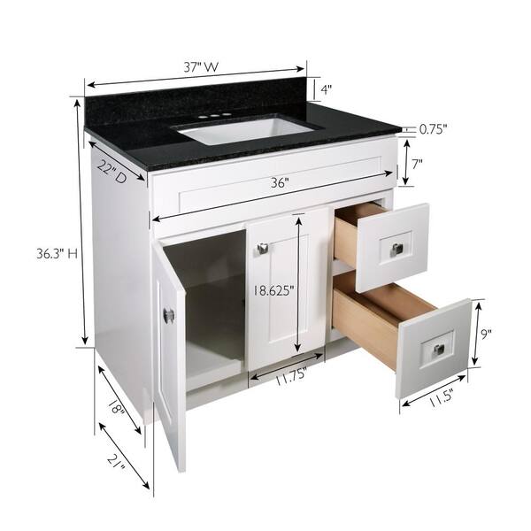 Brookings 37 in. W x 22 in. D x 36.63 in. H Bath Vanity in White with Black Pearl Granite Top with White Basin