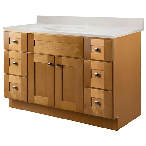 Brookings 49 in. W x 22 in. D Bathroom Vanity Cabinet in Modern Birch with Ivory Swirl Cultured Marble Top, Assembled
