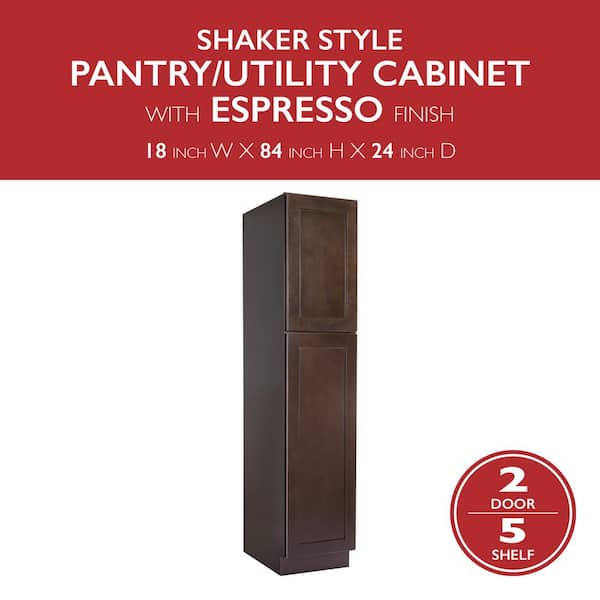 Brookings Plywood Ready to Assemble Shaker 18x84x24 in. 2-Door Pantry/Utility Kitchen Cabinet in Espresso