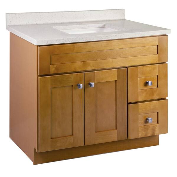 Brookings Shaker RTA 37 in. W x 22 in. D x 35.75 in. H Bath Vanity in Birch with Frost Cultured Marble Top
