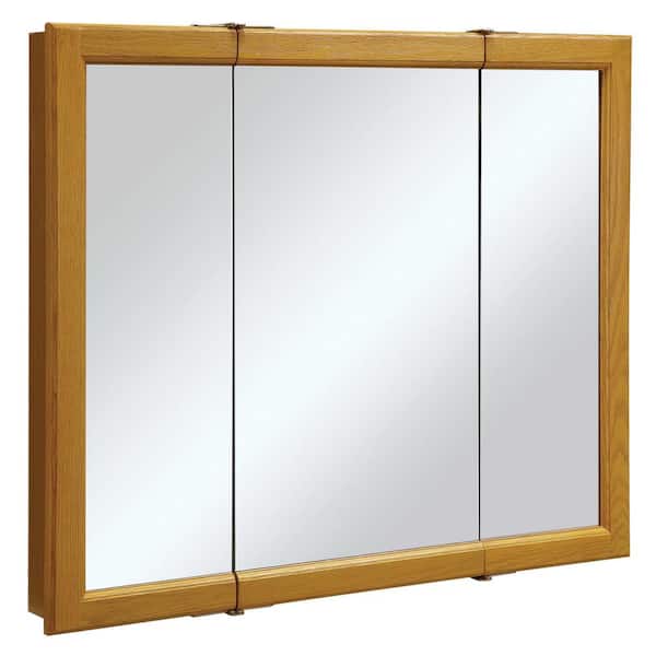 Claremont 36 in. x 30 in. x 4-3/4 in. Surface-Mount Tri-View Bathroom Medicine Cabinet in Honey Oak