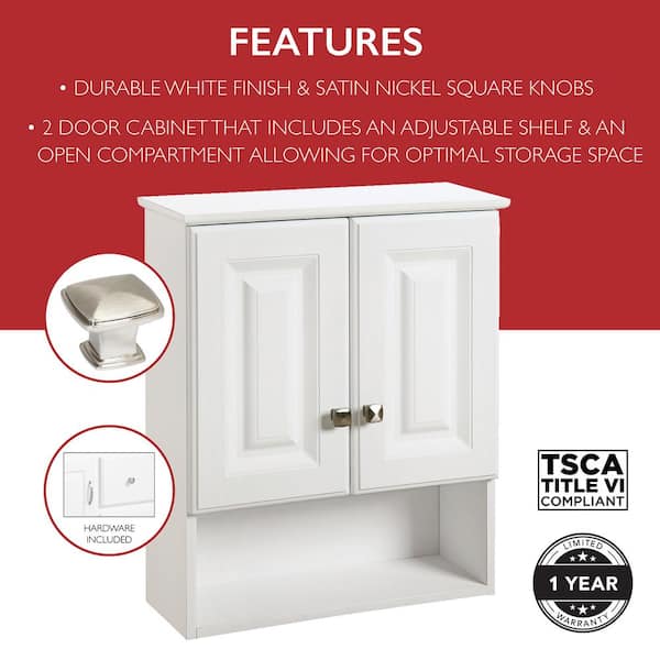 Design House Wyndham 22 In. W x 8 In. D x 26 In. H 2-Door Bath Wall Cabinet with Satin Nickel Hardware, White