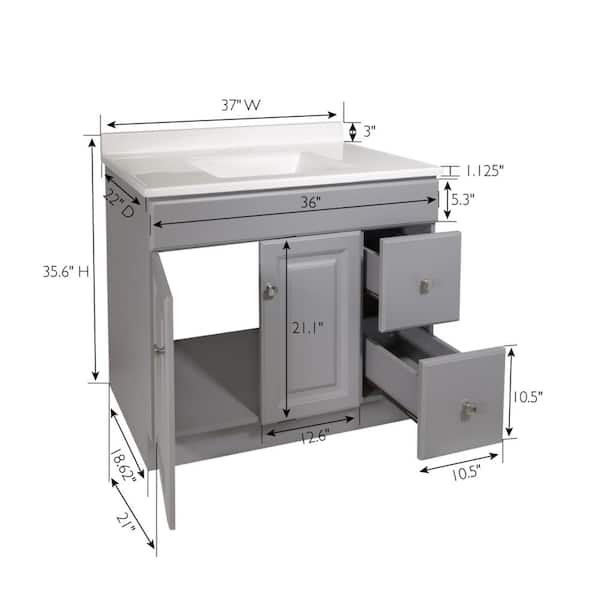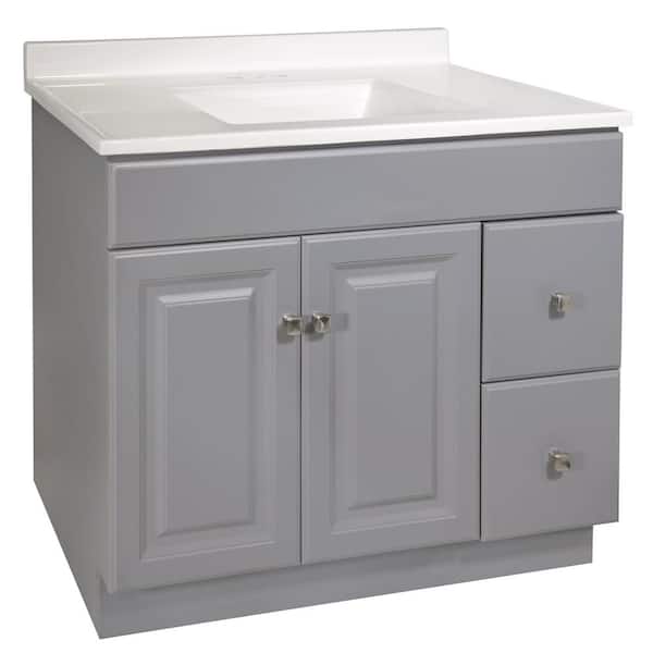 • Bathroom vanity in gray with cultured marble solid white top