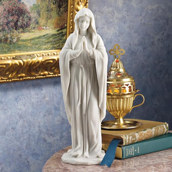 11.5 in. H White Blessed Virgin Mary Bonded Marble Tabletop Statue