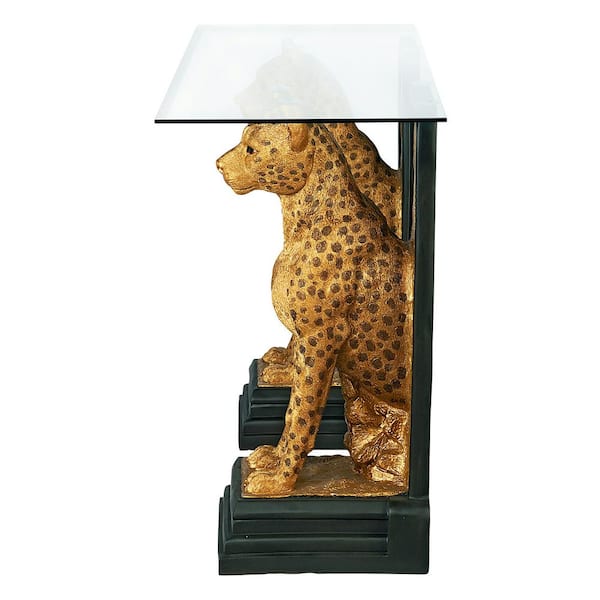 Royal Egyptian Cheetahs 34.5 in. H Multi-Colored Polyresin Glass-Topped Console Table