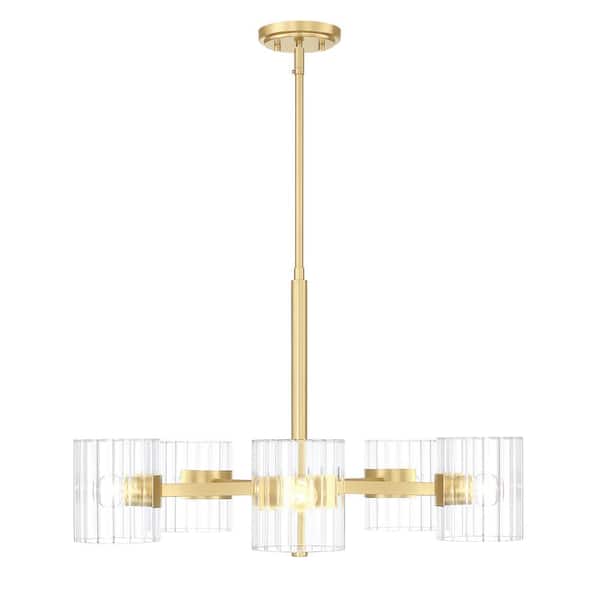 Aries 5-Light Brushed Gold Transitional Sputnik Chandelier for Dining Areas with No Bulbs Included