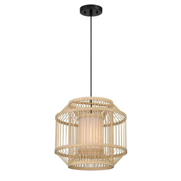 Artasia 60-Watt 1-Light Natural Cane Tropical Pendant Light With Black Accents Pendant and No Bulbs Included