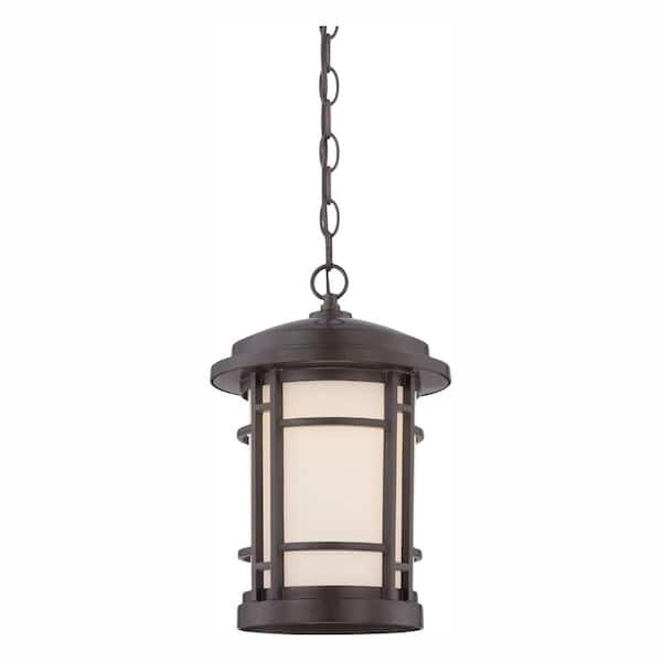 Barrister Integrated LED Burnished Bronze Outdoor Pendant Hanging Lamp with White Opal Glass Shade