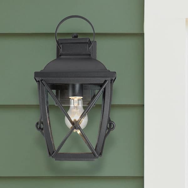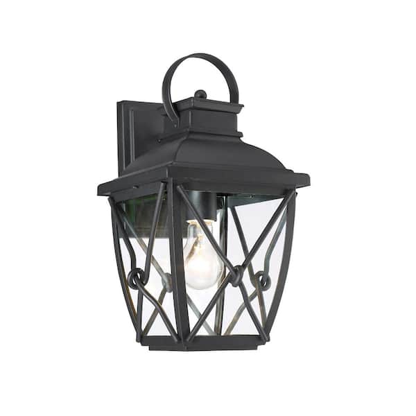 Belmont 15.25 in. Black 1-Light Outdoor Line Voltage Wall Sconce with No Bulb Included