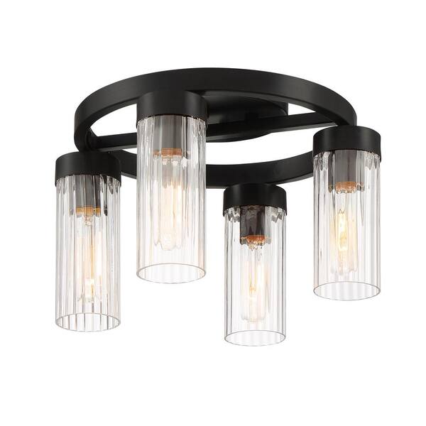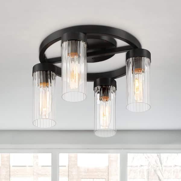 Braden 14 in. 4-Light Iron graphite Modern Entryway Semi-Flush Mount with Striated Glass Shades
